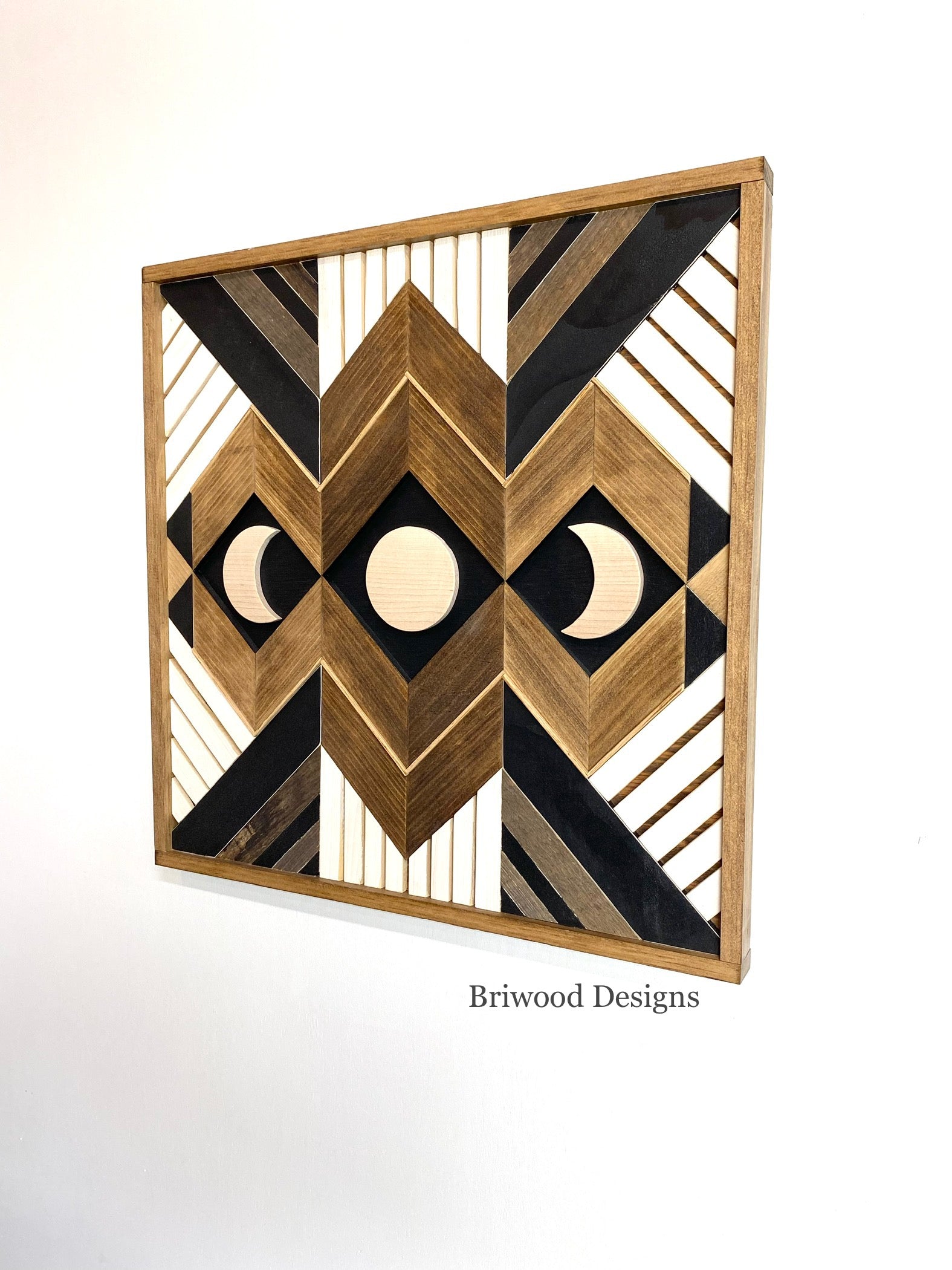 Handmade in Bancroft, Ontario. Each piece is made of reclaimed and new wood. The moon phases are cut from maple.